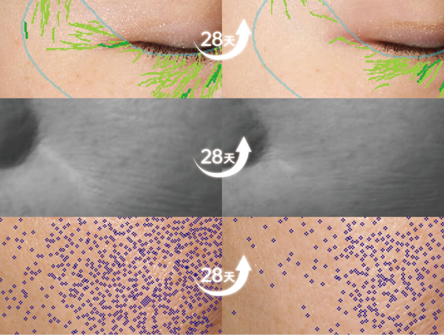 *数据源自第三方检测机构,报告编号CRS-2021-RB-01-2,34位健康受试者在28天连续使用nebulyft莱璞点阵射频美容仪后肌肤改善数据